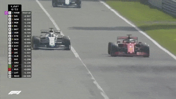 Alfa Romeo brought in Antonio Giovinazzi, but more importantly, Mercedes made a massive unforced error by bringing in Hamilton from the lead, not sighting that there was a flashing orange light with an X at the Parabolica, signalling that the pit lane was closed.