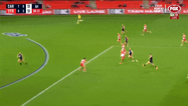 Mark Blicavs casually ripping the ball from the ruck, and kicking a goal from 60m out on his non-preferred foot,