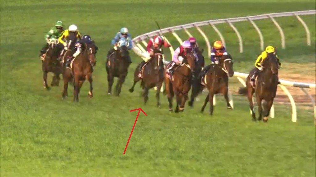 Then, when the Japanese horse got shuffled back on the turn, he didn’t follow Persan looking for runs up the inside, and decided to peel off and go running up arses on the outside.