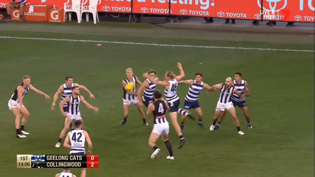 So as we reach Week Two of the finals, the yobbos of Australia find ourselves with the age old problem of Geelong being forced to wear their white shorts as the ‘Home’ team because of Collingwood wearing a predominantly black guernsey, as it was in Round 7, in an effort to avoid these scenes from the 2019 Qualifying Final, where the lack of contrast caused by the short choices just didn’t help anyone.