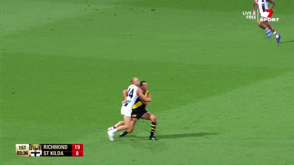 I think that Trent Cotchin coathanger on Zac Jones needs some good old Jim Ross commentary