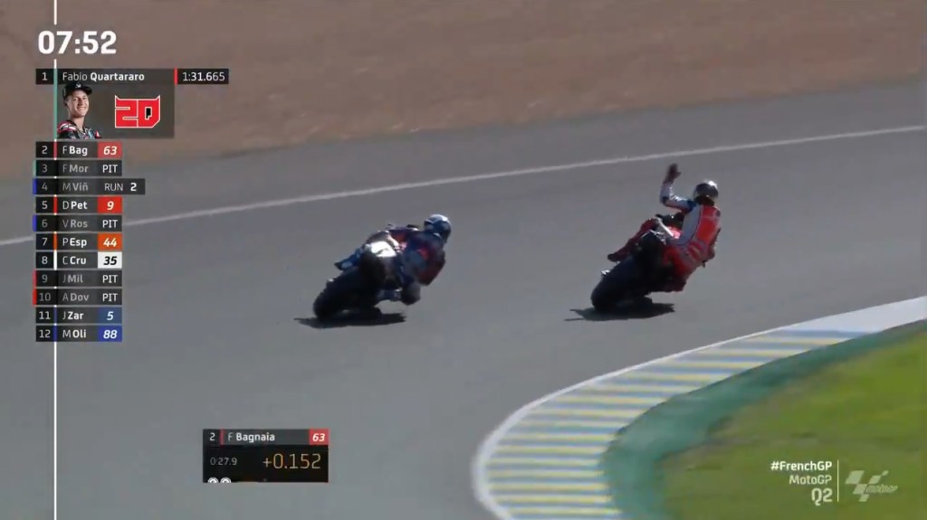 A bad final sector cost Rossi, while Morbidelli and Oliveira just plain struggled, with Bagnaia taking issue to Oliveira apparently holding him up and not looking when the Ducati was behind him in a flying lap, which Miguel responded to by calling Pecco “Childish”, although they both resolved the matter in person afterwards.