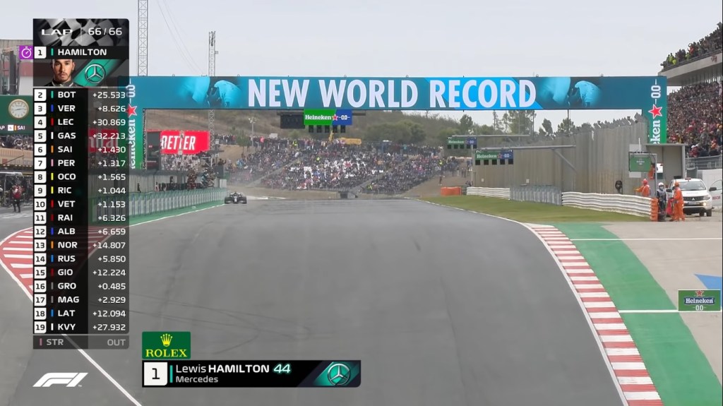 But anyway, we were just counting down the laps to Hamilton claiming one of the greatest Formula 1 records, as he set another fastest lap on Lap 64, just to rub it in.