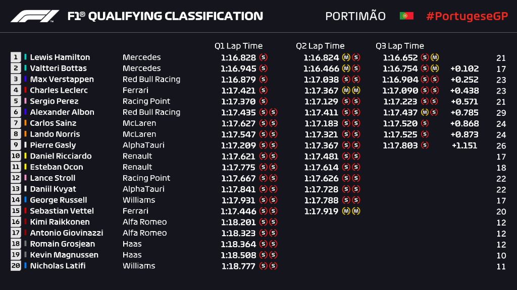 Anyway, you know the rest of the story – Valtteri Bottas had been fastest across Friday and Saturday, and was fastest after the opening runs ahead of Hamilton (Both Mercedes ran Mediums) and Verstappen, then Bottas responded to a Hamilton flying lap by setting a 1.16.754, but as time expired, the most successful one-lap driver in living memory would have the last word once again…
