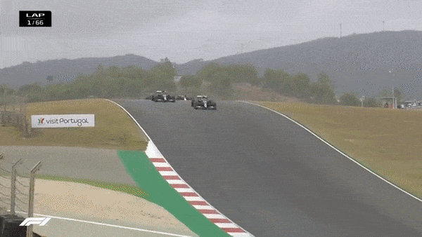 Hamilton led off the line, Verstappen was caught wide against Bottas at Turn 3, and an ambitious Perez tried going around the outside of Verstappen at Turn 4, only to get sent into a spin by the Red Bull, narrowly avoiding the wall and carrying on in last place – He pitted for Mediums to end the lap.