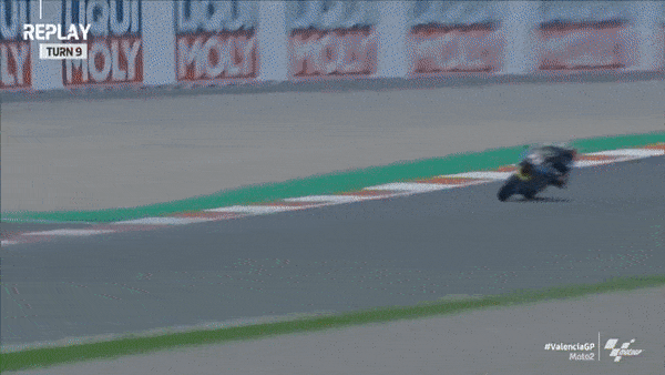 In a major story for the Moto2 title fight, in FP3, 2nd placed Sam Lowes suffered a horrible crash through Turns 8 & 9 after the rear snapped, sending the Kalex into a violent series of somersaults into the gravel, smacking the Brit hard on his helmet, while he also had a suspected right wrist injury.
