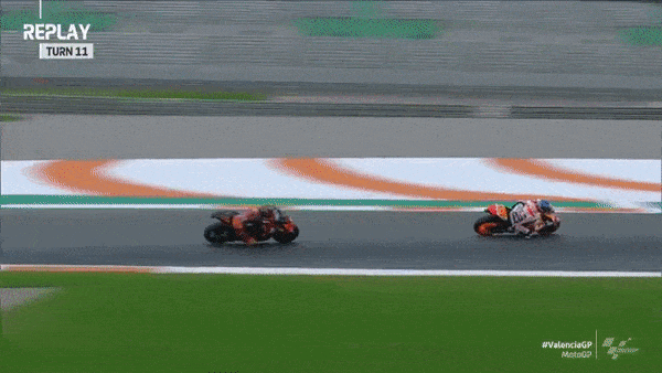 In Q1, just as the TV directors focused on Brad Binder’s KTM following Alex Marquez, the Repsol Honda rider suffered a violent highside at the Turn 11 hairpin, getting flipped through the air and landing flat on his arse, in an incident that many experts noted resembled the bad old days of 500cc highsides.
