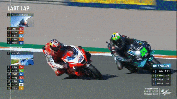 because across THE LINE in 7th came Joan Mir, to CEMENT THE MOTOGP TITLE!
