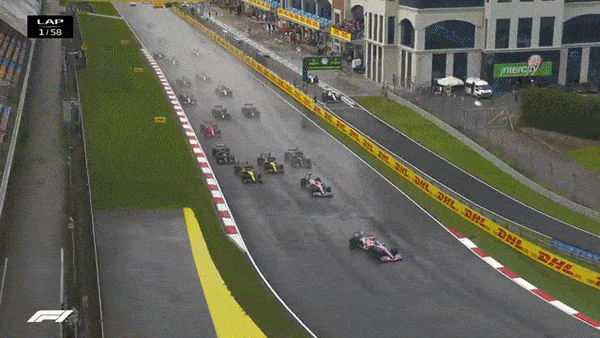A huge black cloud dumped a whole heap of rain on Istanbul Park at 11:30, ensuring a wet, treacherous start to the race, and on the soaked track, Giovinazzi spun off at Turn 2 on his out lap and wound up in the gravel facing the wall (He did make the grid), Russell also broke his front wing going into the pit lane, as both Williams started from the pit lane after some late setup changes.