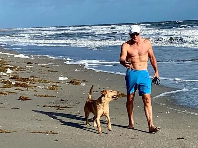 This just in: Well-hung 65-year-old retiree walks his dog shirtless