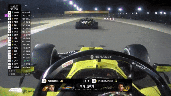 On Lap 17, Hamilton led by 3.3 seconds to Verstappen, Perez had Albon covered in their contest for 3rd, and it was on his lap that Ricciardo and Renault bit the bullet first and stopped for Hard tyres, originally hoping to make a 1-stop work.