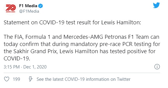 OH MY GOD LEWIS HAMILTON TESTED POSITIVE FOR COVID-19