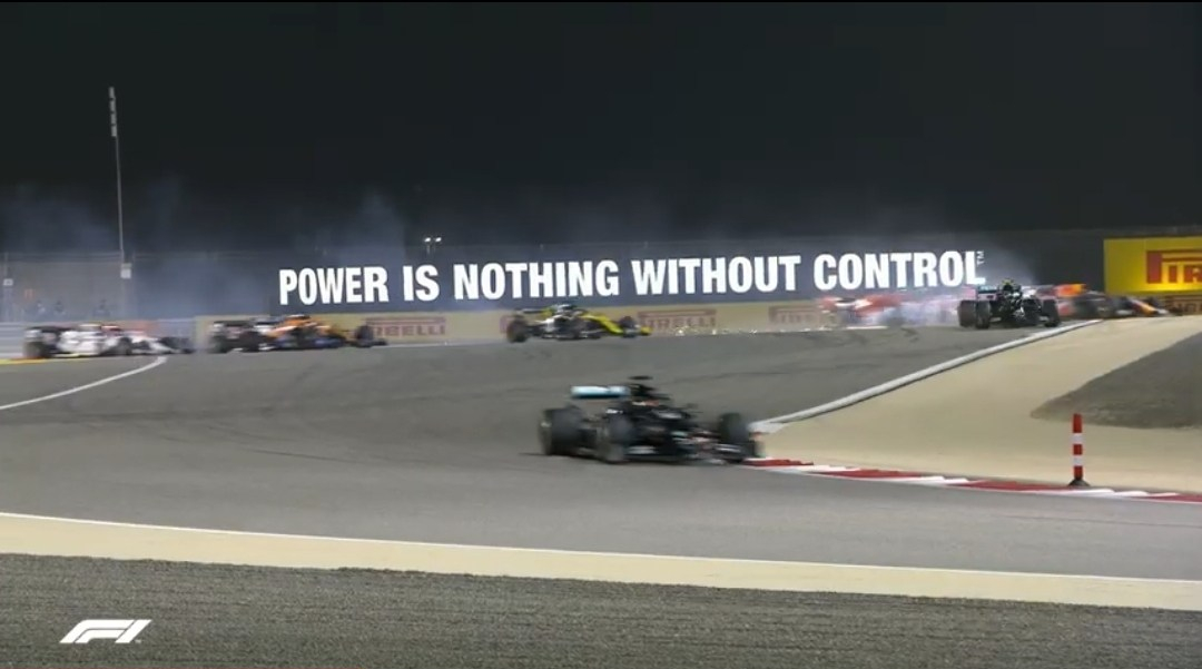 Appropriate advertising from Formula 1 while Charles LeClerc put himself and Max Verstappen out of the race on Lap 1