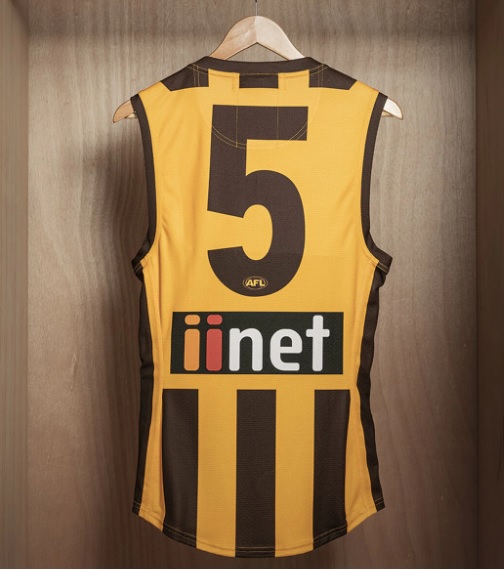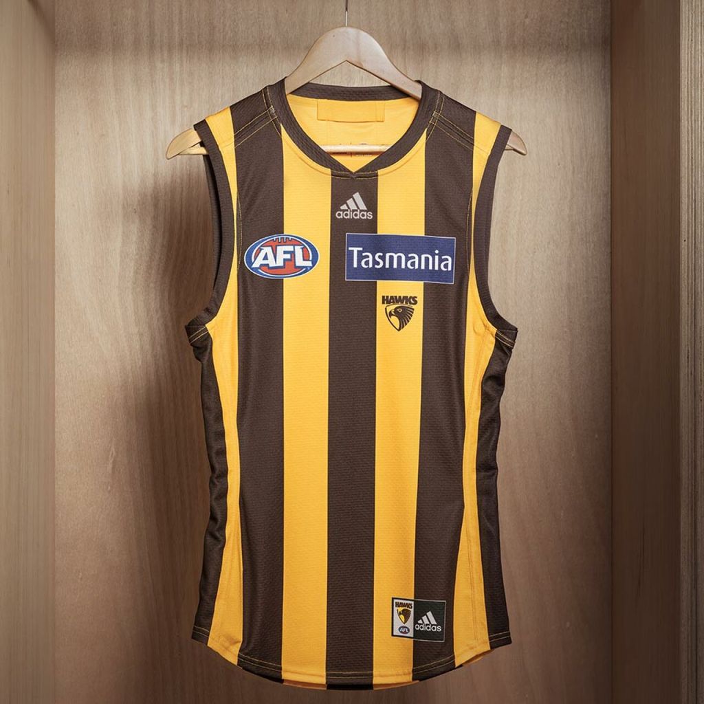 Hawthorn’s new home guernsey, now with the dreaded SIDE STRIPES