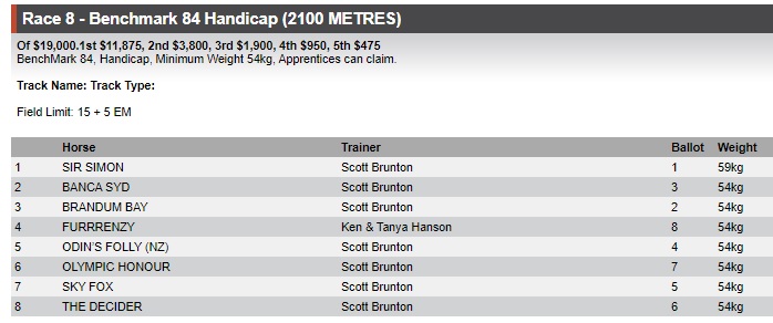 I think Scott Brunton has a good chance of winning Race 8 at Launceston on Saturday