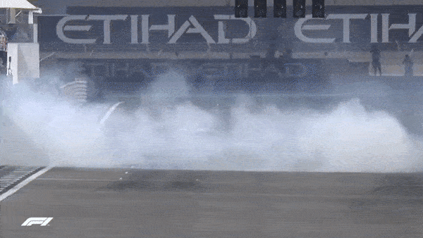 Hamilton and Bottas performed the traditional pit straight doughnuts: