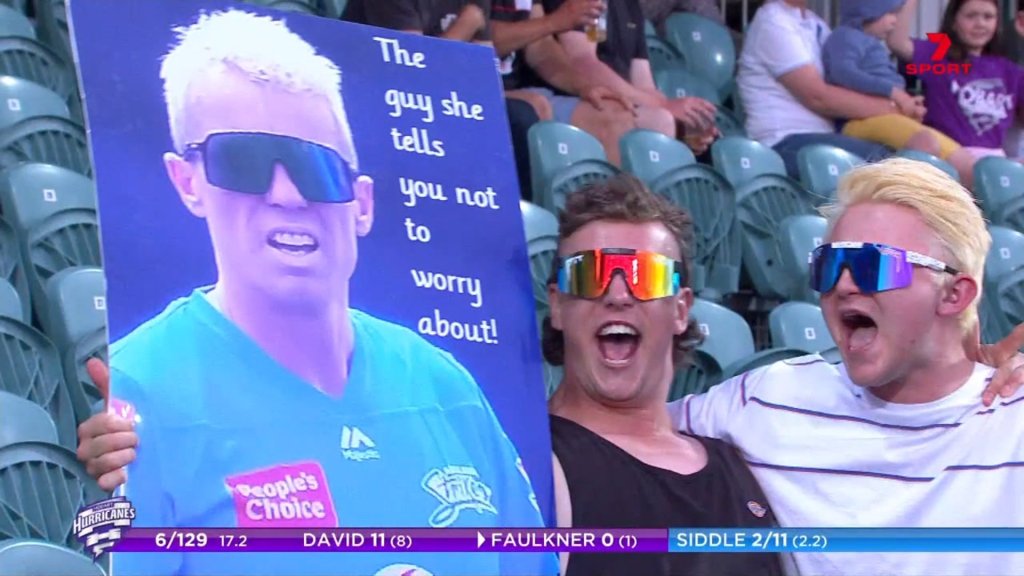 The creatures of Launceston celebrating Potassium Peroxide Peter ‘Billy Idol’ Siddle, and his subsequent 5fer against the Hurricanes