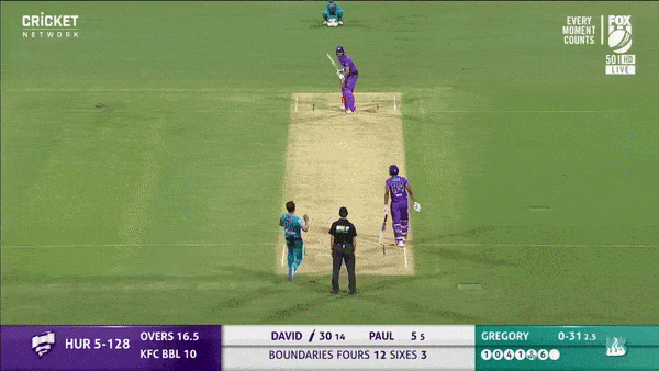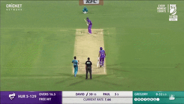 By law, a delivery that doesn’t land on the pitch is a no ball and free hit, and wouldn’t you know it, Tim David sent that free hit to the door of the Heat dressing room, where Chris Lynn gave him a round of applause.