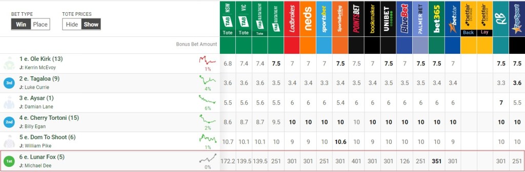 $251 on SuperTAB, $301 with a couple of corporates (Ladbrokes and Neds), and $401 on PointsBet…