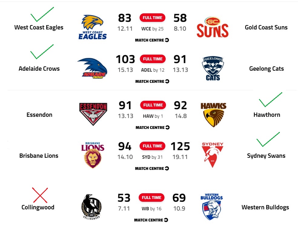 After Lonie kicked what may very well be the Goal Of The Week for Round 1, the Saints came home with a wet sail and kicked 3.2 to 1 goal and won by 8 points, despite having just under half of their best 22 on the sidelines.