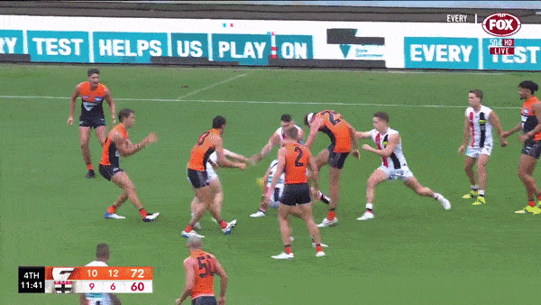 On a wet and wild weekend in Sydney, the Saints hadn’t scored after 14 minutes played in the final quarter, while the Giants kicked 2.3 and were 2 goals up with all the momentum, and the rule of thumb is wet games are harder to score in.