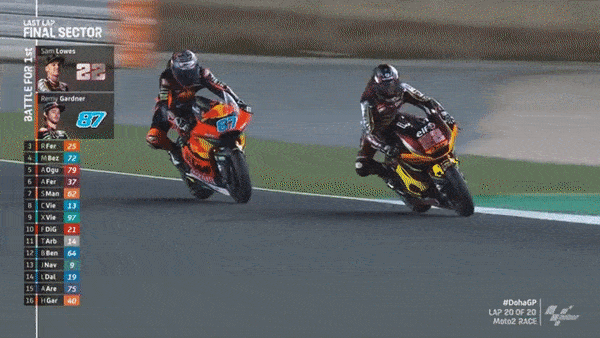 So that was that, as Sam Lowes made it two wins from two races in Qatar to begin 2021, to cap off one of the best Moto2 battles in recent years, Lowes and Gardner set the fastest 2 laps of the race on the last lap!