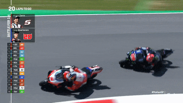 The fight for the race lead also distracted us from the thrilling duel for 3rd between Roberts and Bezzecchi, which changed hands more than a hot potato – Bezzecchi got back ahead on Lap 19, but Roberts braked deep into Turn 1 and was back into 3rd to start the penultimate lap….