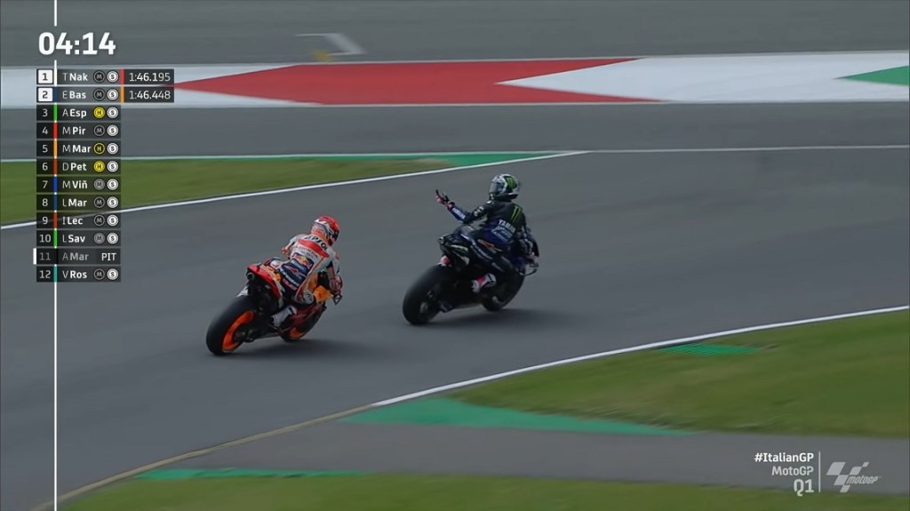 Marc did apologise to Maverick after the session for tactics he described as being “Not completely fair”, even though he didn’t need to, as intentionally following a rider to pick up a tow is still a legal tactic, albeit one that falls under unsportsmanlike.