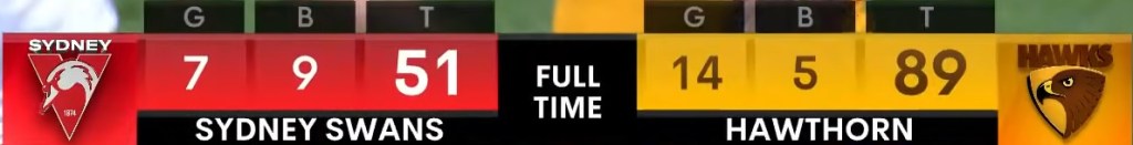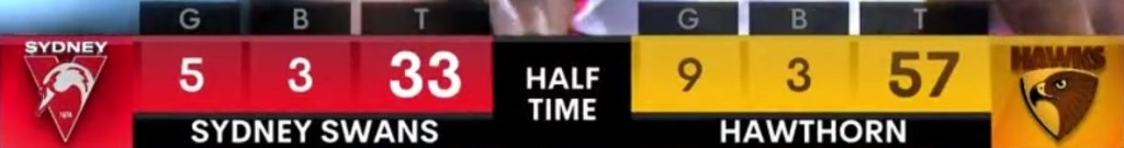 The funniest part about Friday night was that Sydney didn’t even crack Hawthorn’s Half Time Score…. at the SCG