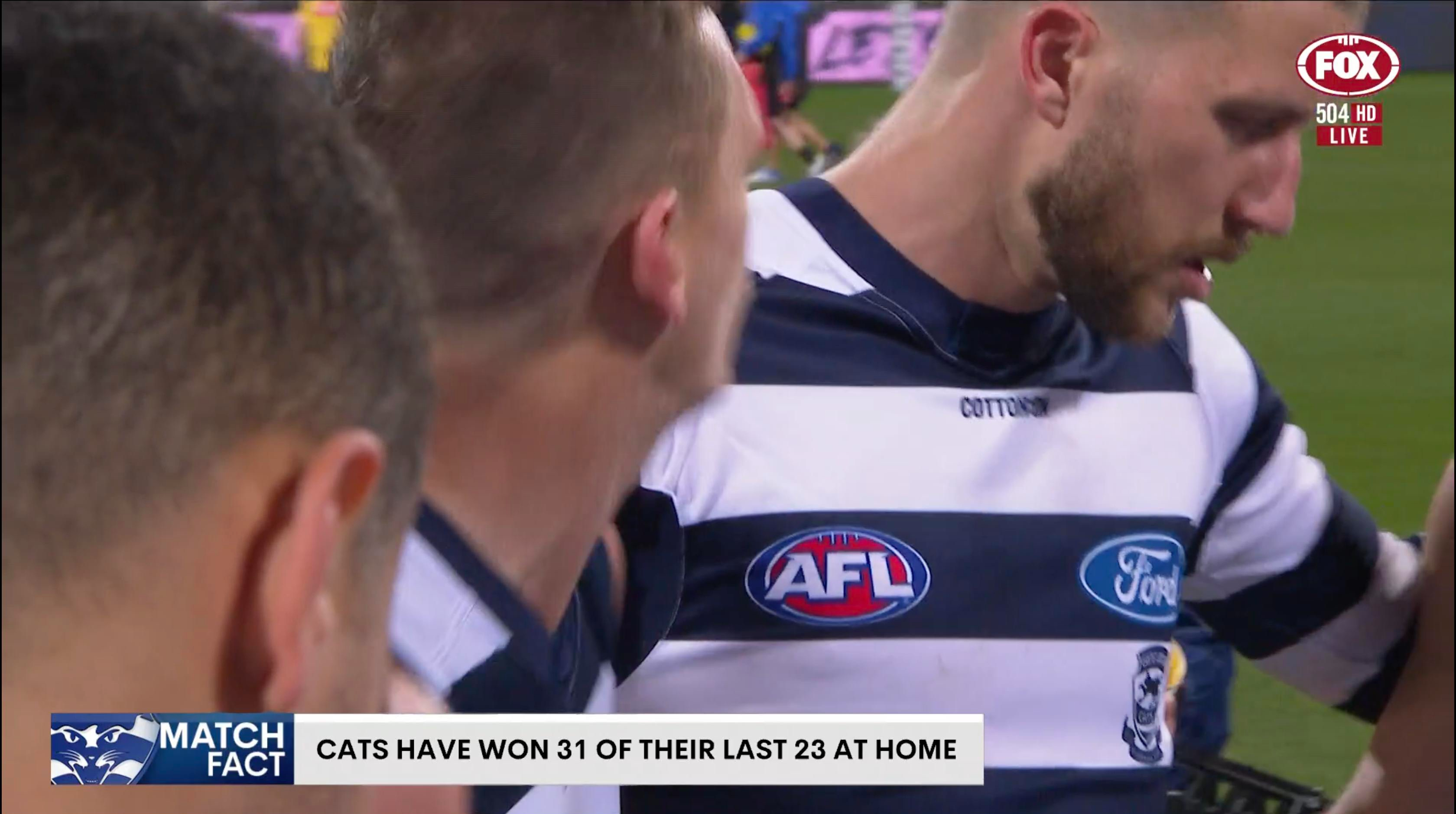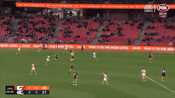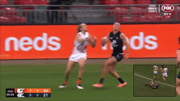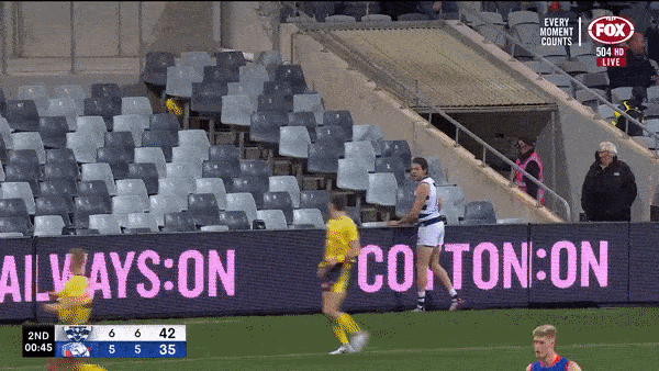 As you’ll recall, Brad Close’s snap in the 2nd Quarter for Geelong’s third goal of the game barely went 8 feet in the air, and with any human being of a normal height who knew how to perform a vertical leap could’ve touched that ball.