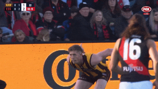 On the subject of Isaac Smith, here he is getting a callback to his days playing for the Wagga Hawks having to climb into the crowd to get the ball