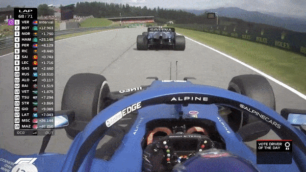 The Raikkonen stop also robbed Gasly of a cheap DRS opening against Ricciardo, who needed to have a really good run on the AlphaTauri to pass, because he would be exposed against Perez directly behind, who also had to deal with the threat of LeClerc.
