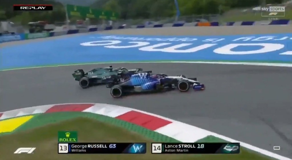 There was also this incident over the sausage kerbs at Turn 1, which apparently didn’t cause the damage, but definitely wouldn’t have helped: