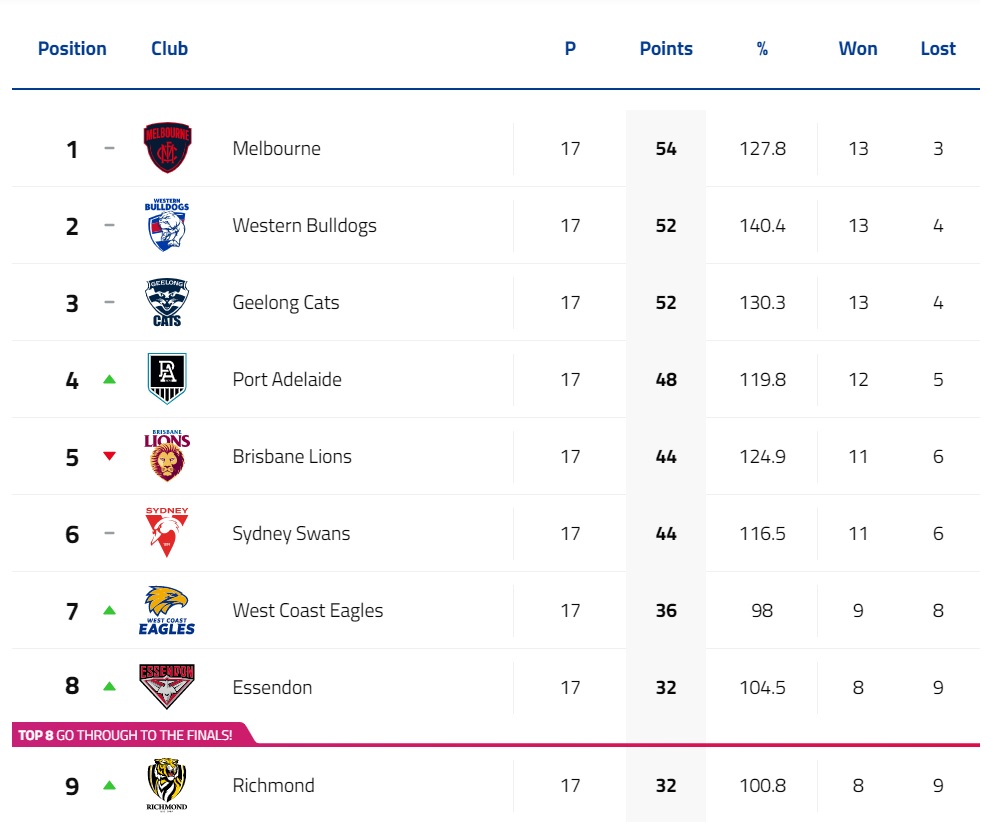 Melbourne’s record against teams currently in the Top 8: 6 wins, 0 losses.
