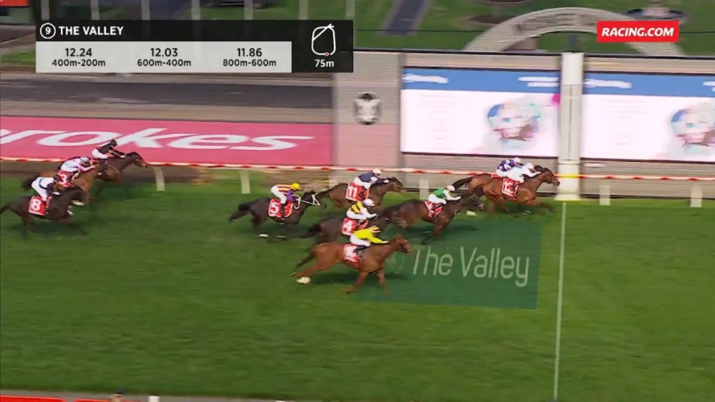 Jamie Kah had it in a perfect position to strike off the hot speed set by Sovereign Award, who predictably died in the arse, and after grabbing the lead on the corner, Degraves just couldn’t go on and was clean passed by both Viral and Skyman, then to cap it off, after sitting 3rd at the 100m, he was totally run out of the placings and ran 6th, even if he was only 1.65L off the winner in Viral, who got the nod in a very close finish, while Shot of Irish somehow picked up again and ran 3rd.