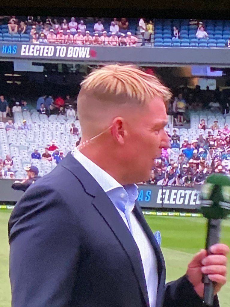 On to the all-important forward line, and we’ll start off with the one and only Shane Keith Warne, who was actually a full forward in his days with St Kilda’s Under 19s before he took up an uneventful cricketing career, and it should be noted that Warnie was one of three guaranteed picks for the Victorian team, despite what he’s done to his head: