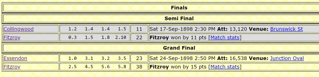 Victoria – Lost the 1898 Grand Final to Fitzroy, an event remembered by nobody