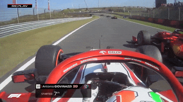 As the Dutch fans cracked the flares through the arena section, the only pre-race notes of note were that Pierre Gasly was allowed to change his set of starting tyres due to cuts picked up in qualifying, Giovinazzi would have his right front changed for the same reason, while Daniel Ricciardo had a potential issue when there was smoke puffing out the back of his McLaren on the sighting lap, which was given the all-clear on the grid by his engineers.