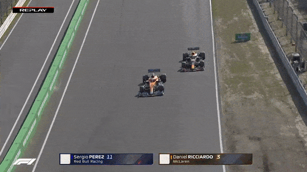 Further down, Norris was much faster than Ocon, which led McLaren to ask Ricciardo to hold Perez up, which is easier said than done on Hards against a faster car on a fresh set of Softs, and Perez completed the pass on Lap 55 around the outside at Tarzan.