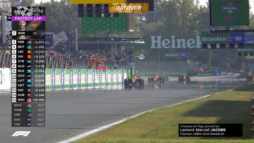 The moment Duncraig Dan won his first race since Monaco 2018, setting the fastest lap on the last lap, and McLaren won their first race since Jenson Button at Brazil in 2012, complete with Lando Norris bringing up their first 1-2 finish since Hamilton and Button at Canada in 2010: