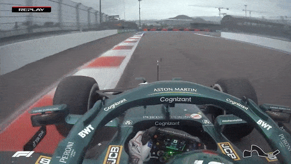 Aston Martin noted to Sebastian Vettel that the rain was going to get worse and that they should consider a tyre change, but right as Vettel got that message, he banged wheels with teammate Lance Stroll at Turn 10: