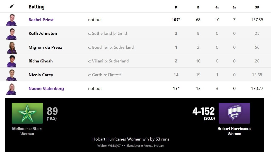 Today’s Women’s Big Bash League headline: Priest Exorcises Stars