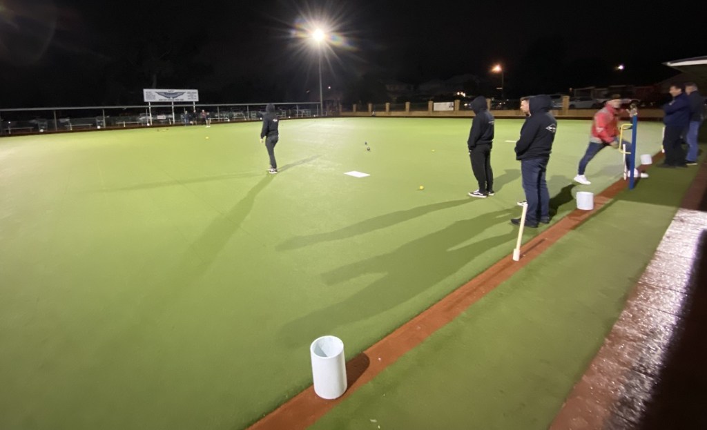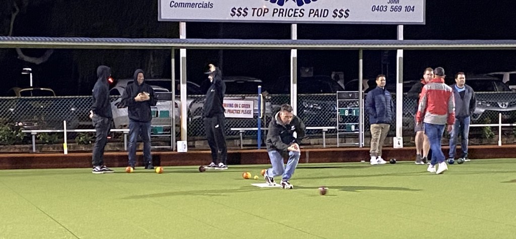 So, while a few of the teams stuck around to enjoy a drink and a bit of the fashion show, the others waited for the weather to clear up so they could have a roll up, namely Jack To The Future, the Bowling Stones (With their kids using the carpet bowls), Team Tommy and the Buffed Helmets, while ‘The Mayor of Manning’ Grahame Maples took the time to provide a few simple pointers to Phil from Manning Up, the big one being that you should shorten your step on the mat when you bowl, an issue I’ve been guilty of many times over.