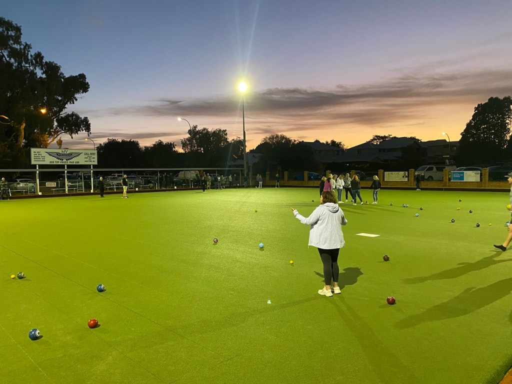 The fifth and final tiebreak was over on Grass 3, which nearly didn’t happen as Roy from the Merkins was left shorthanded after a few of his teammates inexplicably pulled their heart muscles and couldn’t play, but thankfully Barbara and the Unbelievabowls had 4 bowlers, so they kindly rotated their spare on every end, and roving reporter JT helped out as a floater to give the Merkins a 3rd bowler, and it resulted in a very close game, as the teams split the sets in blowouts, and on the last bowl of the tiebreak, JT pulled one out and got the Merkins over the line, but given everyone played for the Merkins at some point in the night, as Hot Chocolate would say, everyone’s a winner baby, that’s the truth.