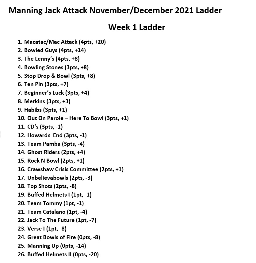 After 8 months of build-up and record levels of anticipation, Greatest Social Bowls Competition Between Manning Road and the Canning River is back to end 2021, and I can start off by confirming this is officially the BIGGEST season of Manning Jack Attack in its illustrious history, with a record 26 teams (Beating the old record of 24) entered for this season, 10 of them being new (If you count Verse I, who are the old Team 180), with 4 teams also changing their names from the February/March comp: