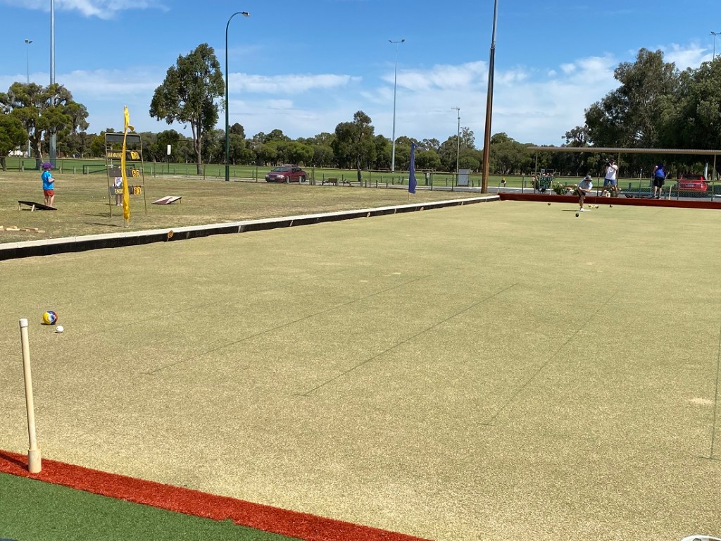 Just to explain what was going on over on that other rink in the photo, we had the Semi Finals and Final of the Men’s Triples…. True story, went down to the last bowl, and let’s just say one team, led by Gobby, performed the equivalent of shooting themselves in the foot and blowing 4 toes off.