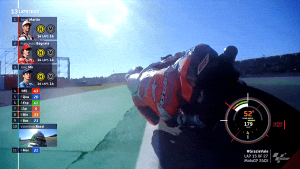 Still, I don’t Fabio ever got close enough to make a lunge on Joan, while Miller started to ask serious questions of Martin, closing to within 3 tenths to start Lap 26, then the gap did get down to 2 tenths during the lap, but unfortunately for Jack, time was the enemy, and that was pretty much the way the race and the season ended.