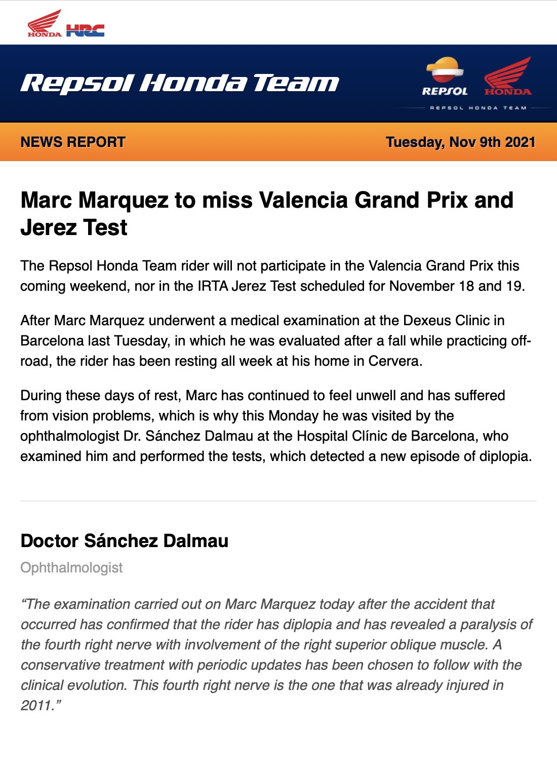 Sadly, while some of Vale’s great rivals in Max Biaggi, Casey Stoner and Jorge Lorenzo were all trackside to see the end of an era, Marc Marquez wasn’t able to race The Doctor one last time, as he underwent surgery on the fourth nerve in his right eye following a recent off-track crash while training for the Algarve GP that left him with concussion and a new episode of diplopia, an issue Marquez first suffered during a crash at Malaysia in 2011 while riding in Moto2, which very nearly ended his career.