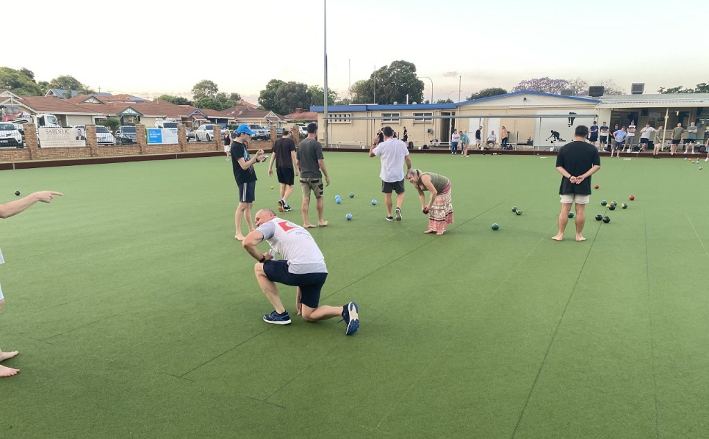 In a contest between the car wholesalers from the Habibs and the concreters from Team Catalano, the Habibs (John, Abes and Nick) gave the Italians a set of cement shoes and made them swim in the Canning River, winning 33-3 overall thanks to TWO holds of 5 on their powerplays, which gave them 20 shots there and then, enabling them to vault like Steve Hooker over the top of the Bowled Guys.