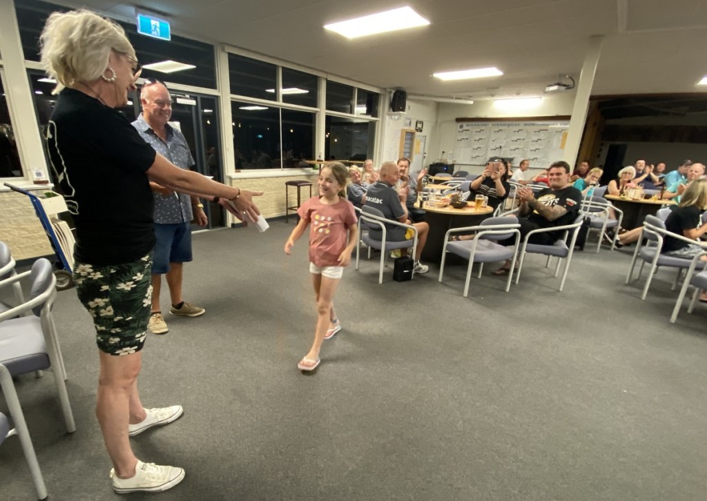 Other than that, after her performance bringing in the glasses back in Week 3, young Indie Macpherson (Daughter of Adam & Belinda from Rock N Bowl, and granddaughter of Macatac) was finally given her long awaited present for being the Best Glass Collector This Side of Manning Road, and it was only fitting that our esteemed bar manager Theresa award Indie her overdue present, with Pricey happily loitering in the back of the photo, which I never bothered to edit out: